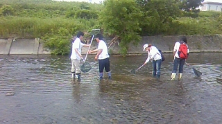 手網を用いて生物採集