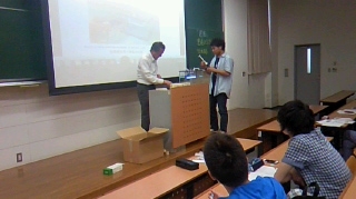 実験装置を用いてフロンによるオゾンの分解を確認する堀氏と学生