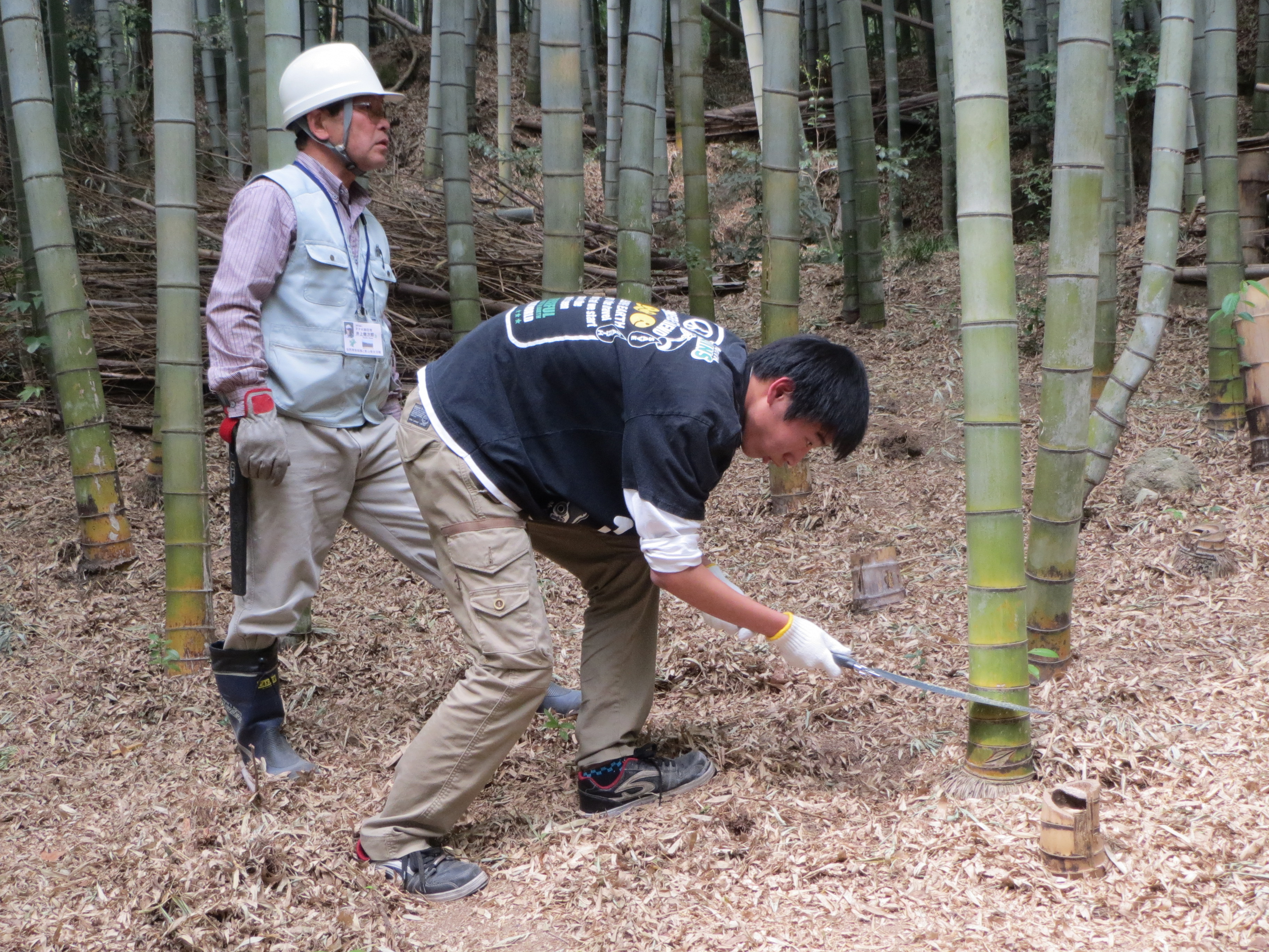 PPK四日市の優しい講師の方々の指導の下で竹間伐を体験した