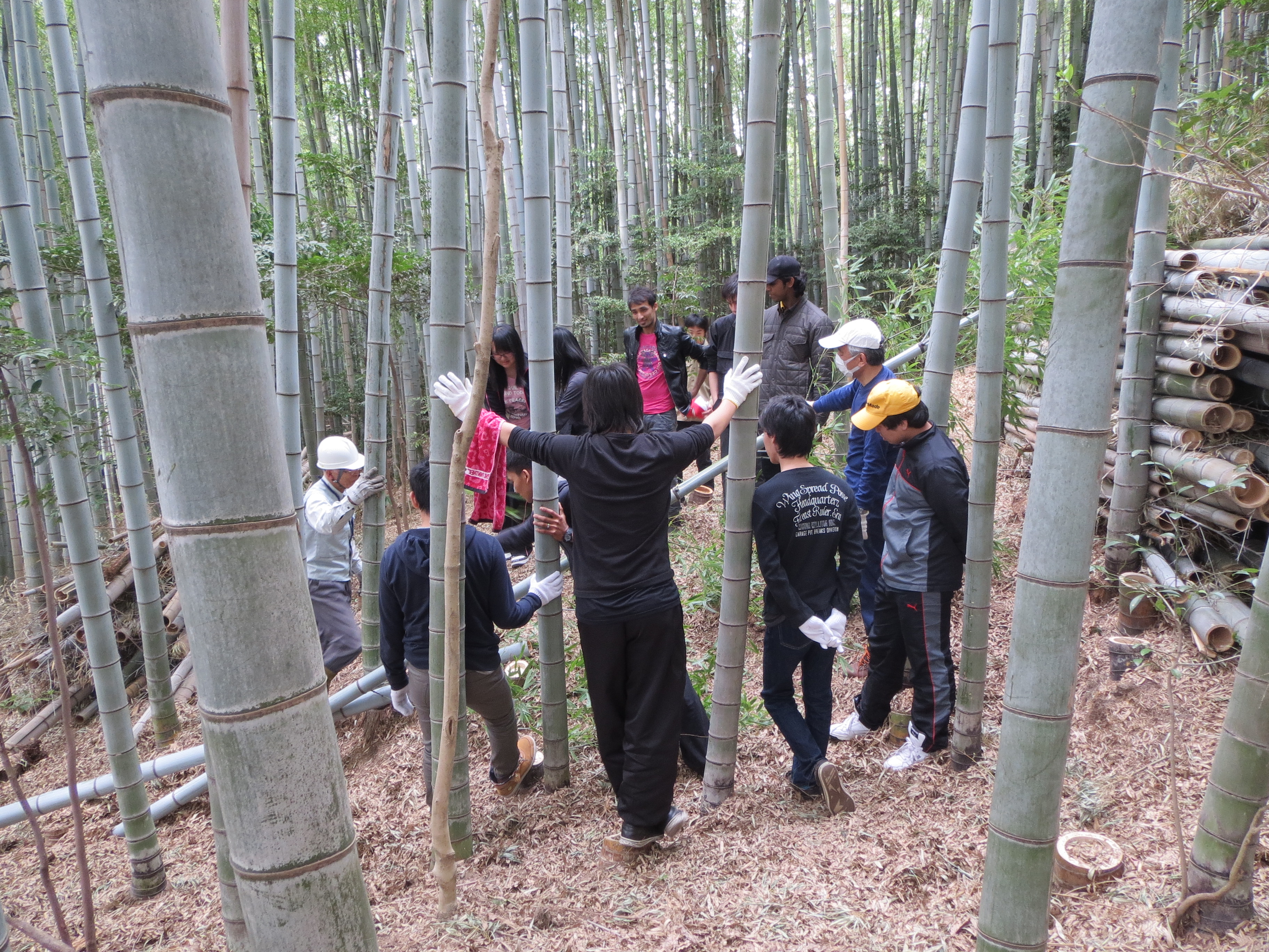 切り倒した竹は裁断して積み上げた。