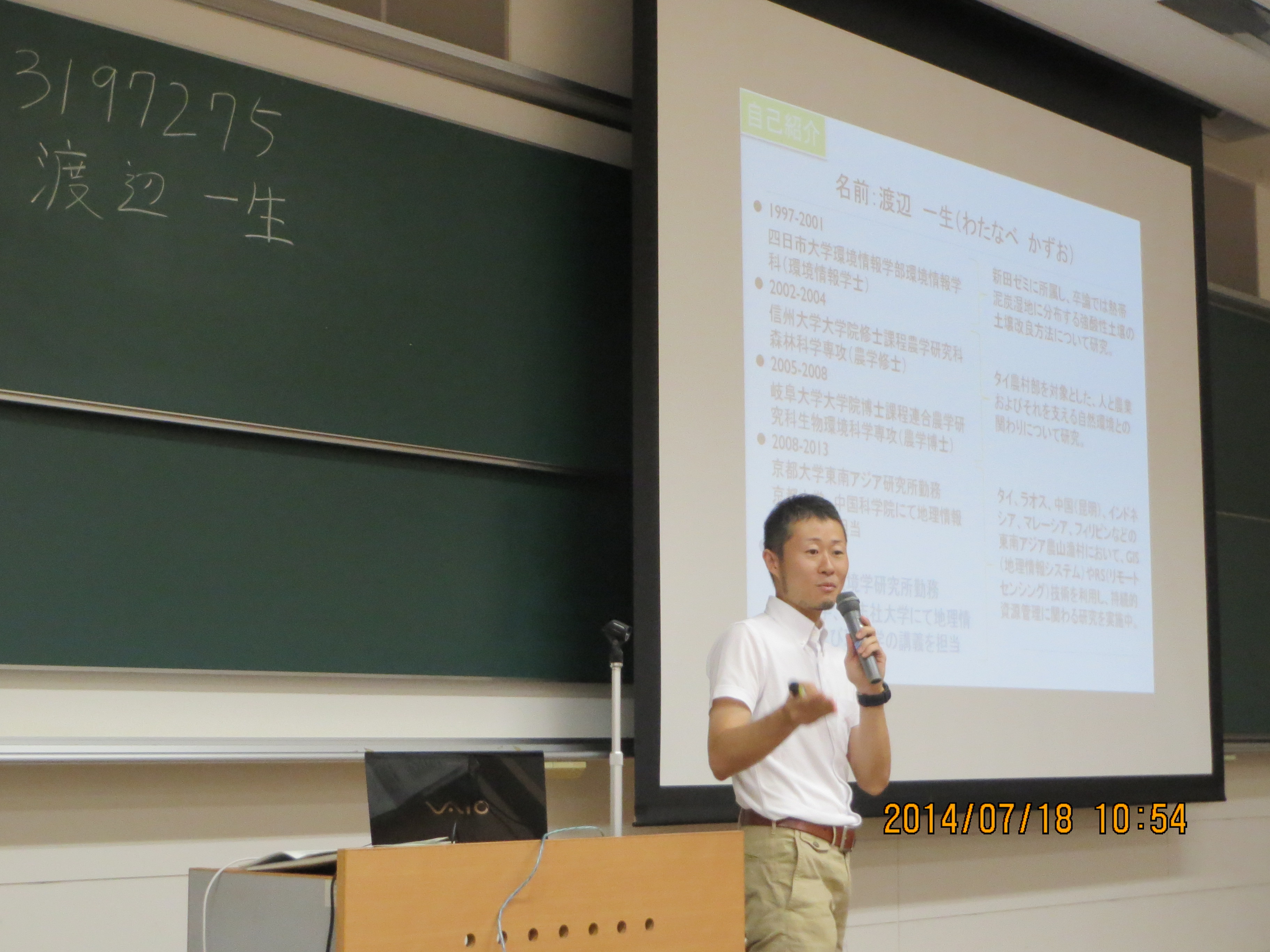 在学時代の学籍番号を書いて講義を始めた渡辺氏