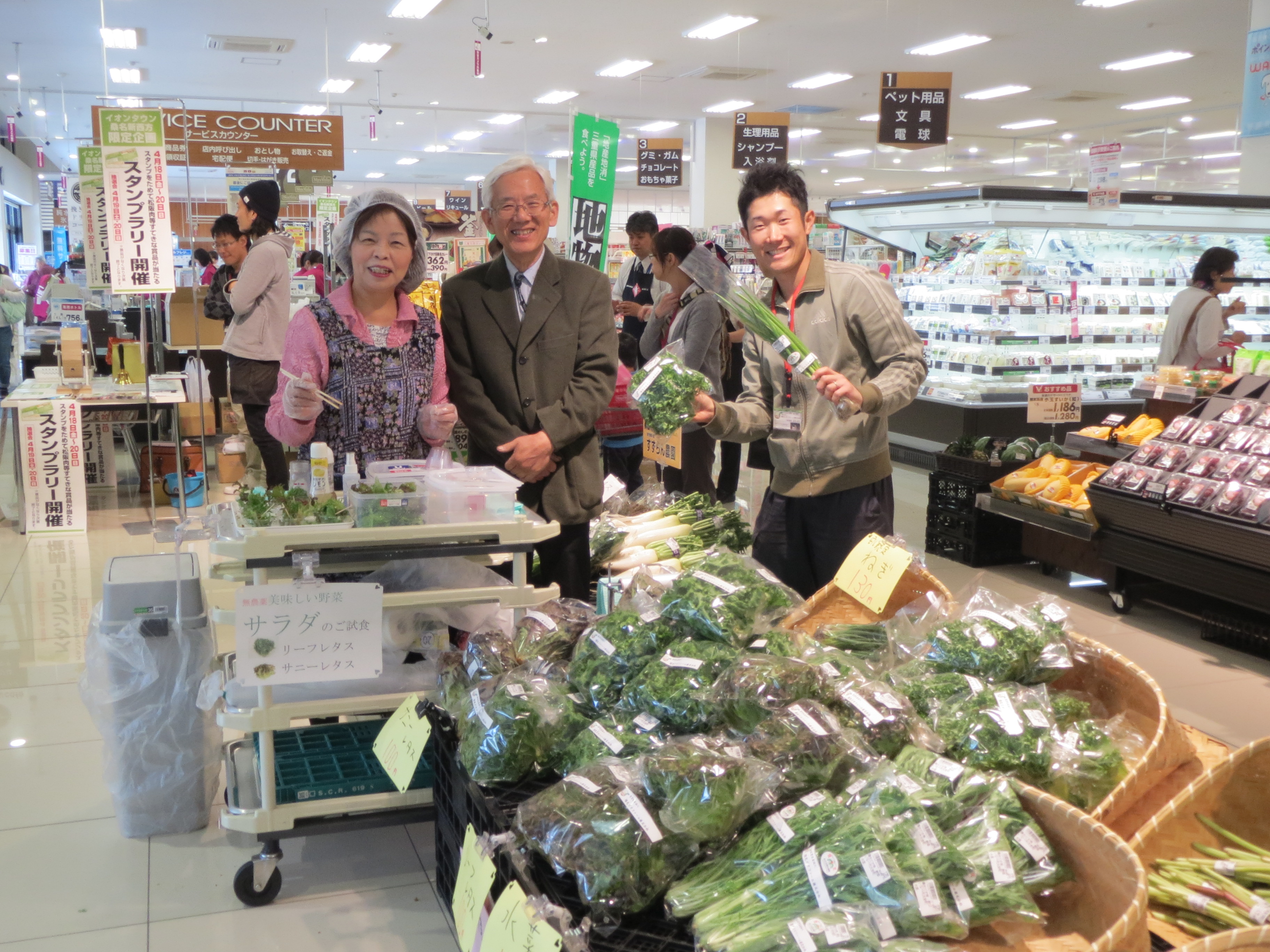 陽光ビオファームの丸山社長(左)、ご主人(中)、谷口君(右)